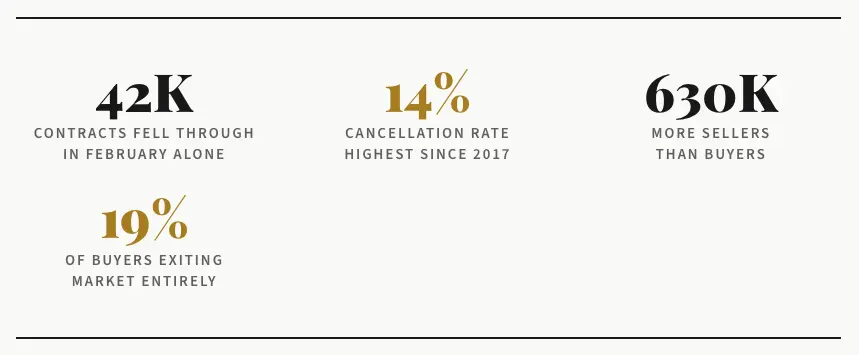 More than 42,000 homebuying contracts collapsed in February — nearly 14% of all homes that went under contract that month. That’s the highest cancellation rate for any February since Redfin started tracking the data in 2017. Buyers aren’t just hesitating. They’re walking away from deals they’ve already committed to.